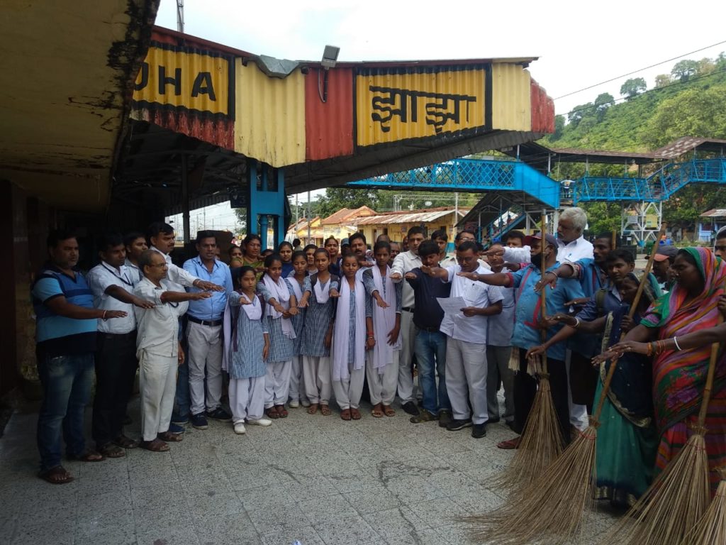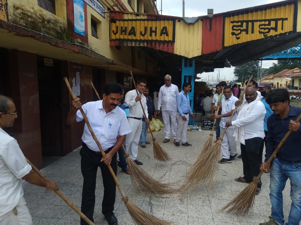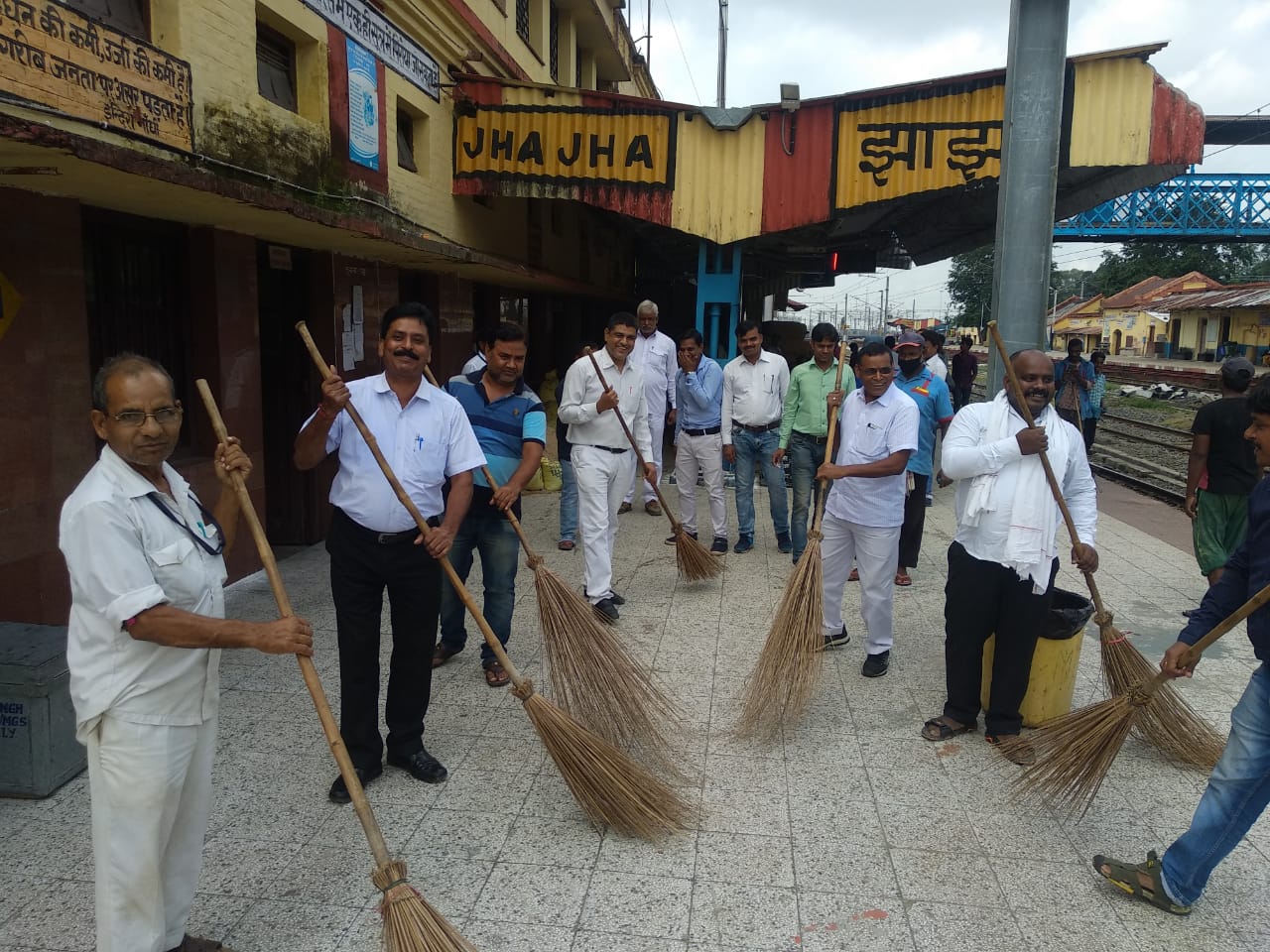 गांधी जयंती के मौके पर रेलवे के पदाधिकारी एवं रेलकर्मी के द्वारा चलाया स्वच्छता अभियान