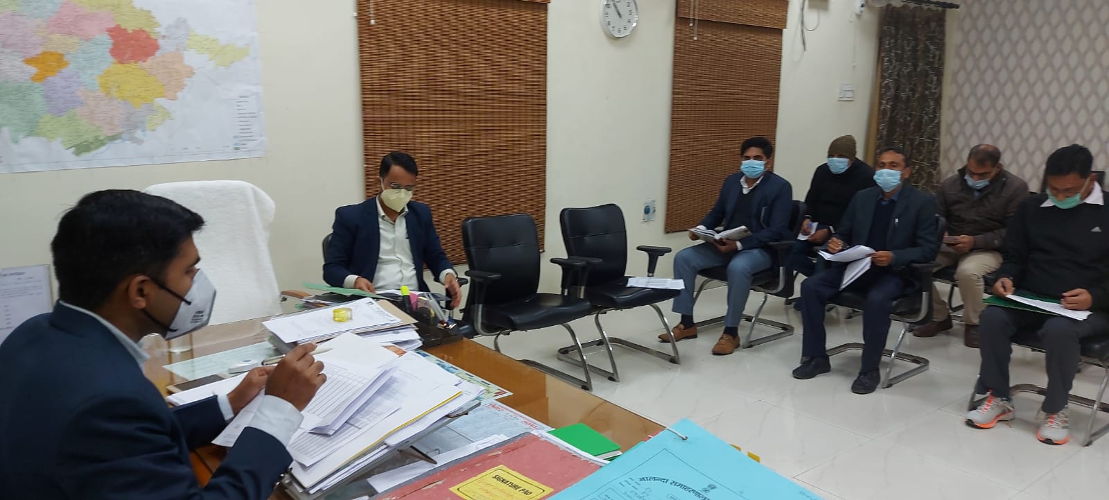 जिलाधिकारी  योगेंद्र सिंह की अध्यक्षता में आज धान अधिप्राप्ति वर्ष 2021- 2022 में किए जा रहे धान अधिप्राप्ति की समीक्षा बैठक आहूत की गई।