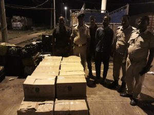 रजौली (नवादा) बिहार में पूर्ण शराबबंदी के बावजूद अवैध रूप से शराब की तस्करी कर तस्कर बिहार में खपा रहे हैं।इसके कारण पूर्ण शराबबंदी कानून बिहार में फेल होता दिख रहा है।हालांकि पुलिस शराबबंदी कानून लागू करने के लिए पुरी तरह से कटिबद्ध है और लगातार छापेमारी और धर-पकड़ कर रही है।इसी दौरान उत्पाद अधीक्षक अरुण कुमार मिश्रा के निर्देश पर बिहार-झारखंड सीमा पर स्थित समेकित जांच चौकी पर उत्पाद एसआई पिंटू कुमार द्वारा रविवार की देर शाम में वाहन जांच के दौरान महेंद्रा पिकअप से 960 बोतल अंग्रजी के साथ तीन तस्कर को गिरफ्तार किया है।गिरफ्तार शराब तस्कर के पास से रॉयल स्टैग प्रीमियर और इंप्रेरियल ब्लू रिजर्व का 960 बोतल अंग्रेजी बरामद किया गया है।गिरफ्तार शराब तस्कर की पहचाना सारण जिला के ईसुवापुर निवासी निवास प्रसाद के पुत्र टिंकू प्रसाद और नवादा जिला के खनवां निवासी सत्यानंद पांडेय का पुत्र कन्हैया पांडेय व नरहट निवासी भोला सिंह के पुत्र सुमन कुमार को गिरफ्तार किया गया है।उत्पाद अधीक्षक ने बताया की रविवार की देर रात्रि से लेकर की सोमवार की अहले सुबह तक विभिन बसों से शराब के नशे में सफर कर रहे 11 लोगों को ब्रेथ एनेलाइजार मशीन से जांच कर उत्पाद अधिनियम के तहत प्राथमिकी दर्ज कर न्यायिक हिरासत में जेल भेज दिया गया है।जांच के दौरान उत्पाद एसआइ सनी कुमार और एएसआई बिशु हेंब्रम और अमित कुमार के साथ कई जवान मौजूद थे।